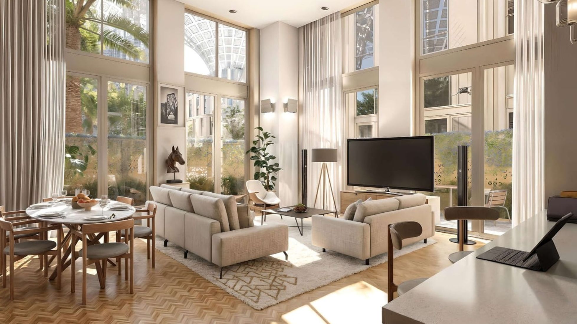 Al Waha Residences 2, 276 exceptional apartments and lofts flawlessly integrated into Expo City Dubai, the new centre of Dubai’s future. These prestige one- and two- bedroomed properties intelligently remodel Expo 2020’s country pavilions to provide spacious, upmarket residences at the heart of Expo City’s unique urban neighbourhood and thriving business hub. Each bright and contemporary home features floor-to-ceiling windows, beautifully shaded by the distinctive ‘Al Waha’ canopies to offer an unparalleled living environment among the city’s dappled courtyards and sikkas.